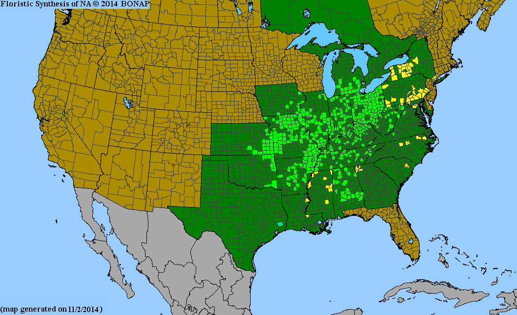 Shellbark Hickory has adapted statewide and grows best on deep, fertile bottomland soils. It tolerates many wet soils even when ponded during spring and overflow periods. Growth is greatly restricted on upland droughty sites.